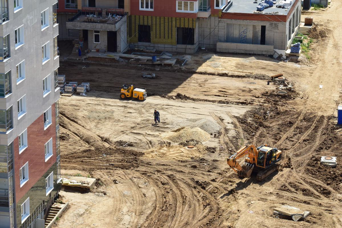 Дом №2. Остался месяц до времени "Ч". Но не успевают...Печалька. В 12 и 17-х домах что то делают внутри, народ шуршит.Водоканал всё перекопал вокруг, везде трубы,трубы...