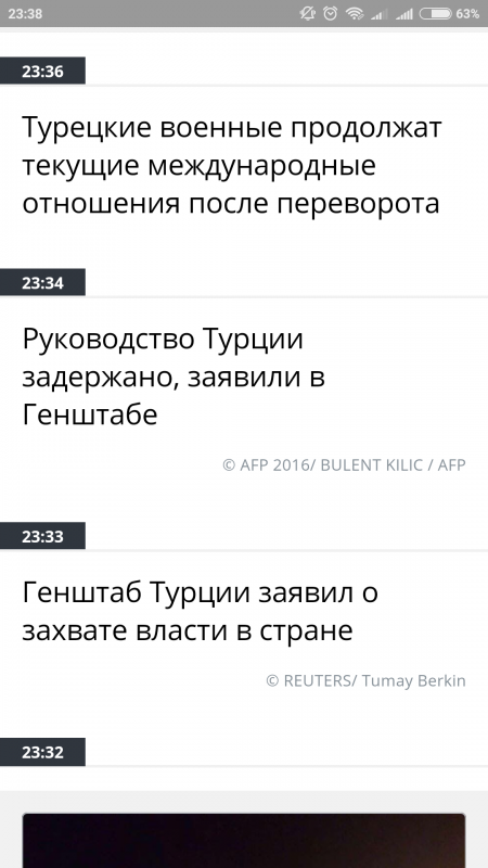 В Турции происходит военный переворот. Эту информацию подтвердил премьер-министр страны Бинали Йылдырым в эфире местного телевидения. Тем временем военное командование Турции, по данным СМИ, уже объявило, что берет в свои руки руководство страной - http://www.gazeta.ru/politics/2016/07/1 ... 3473.shtml#