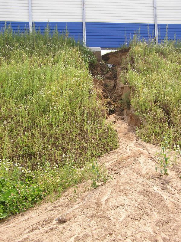 Те места, где насыпь была размыта влоть до начала разрушения асфальта засыпали и, как видно, прошедшие ливни не размывают