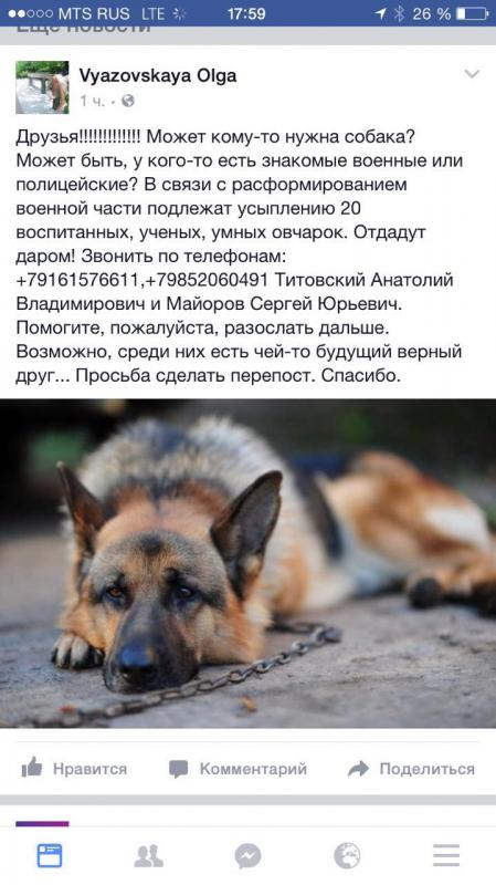 Андрей221 писал(а):же лет 5эту часть расформировывают и собак раздают.