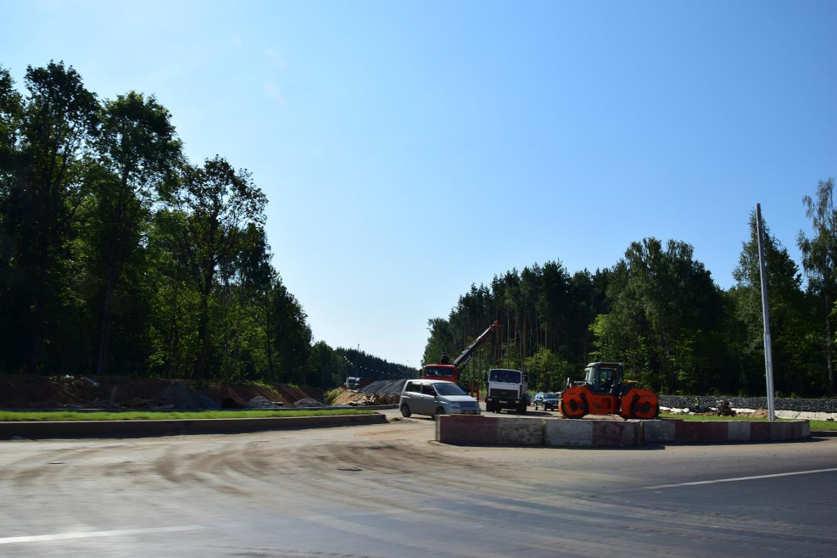 На сходе с М2 на Обход отсыпают временный съезд в левую встречную полосу и поставили столбики, то ли для светофора, то ли для знаков. Похоже, что всю правую сторону, при движении к Глобусу, будут перекрывать, где старое полотно.