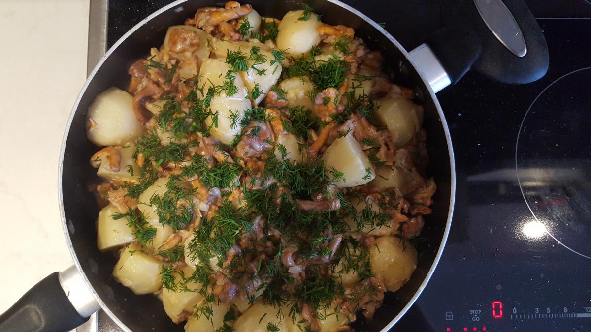 Неделю я её хотела, и наконец-то сделала. Молодая картошка с лисичками в сливках: