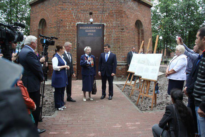 А. Ю. открыл столетнюю водонапорную башню после реставрации.