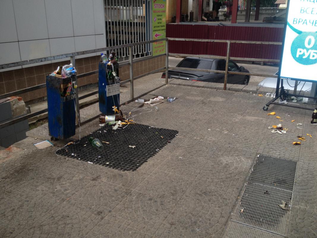 после толпы осталась грязь: вот так праздник выплескивается в сад.