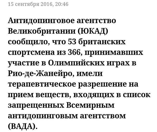 В пробе с Рио-2016 олимпийской чемпионки из США Мишель Картер были найдены три запрещенных вещества, на которые спортсменка пыталась получить разрешение, но ей было в этом отказано. http://www.sports.ru/others/athletics/1 ... ml?ext=dpd