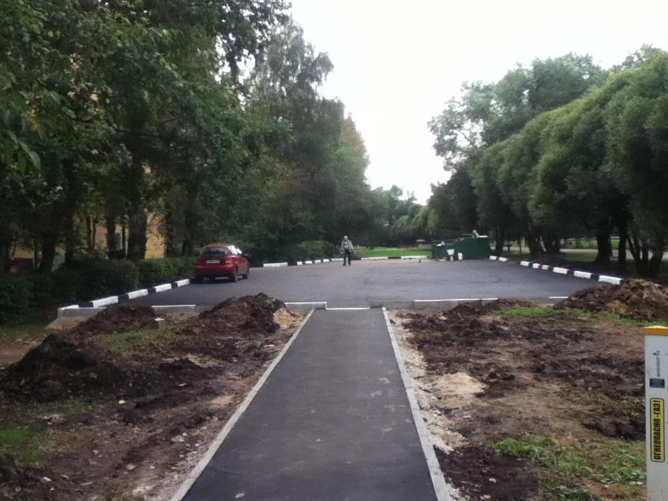 На Весенней в асфальт закатывают все раскатанные и застриженые до смерти газоны.
