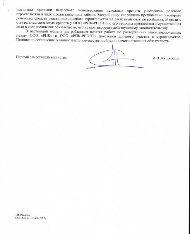 А РПК вообще что-нибудь говорит, почему не возобновляет строительство, хотя было уже объявлено несколько раз о сроках возобновления.Кто с ними общался в последнее время.Там постоянно что-то меняется.То РПК-строй, то РПК-РИЭЛТ, то ЖК Шепчинки.В названиях, в руководстве. То деньги есть, банк дал, то снова решается вопрос о кредитовании( из ответа Минстрой МО).У кого есть новости, поделитесь, пожалуйста!