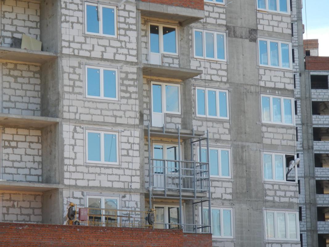Наш уважаемый застройщик начал на прошедшей неделе более активно вести работы на доме №12. На первой секции навесили люльки для монтажа фасада,и на уровне (пока)третьего этажа начали устанавливать металлический профиль для панорамного остекления лоджий.