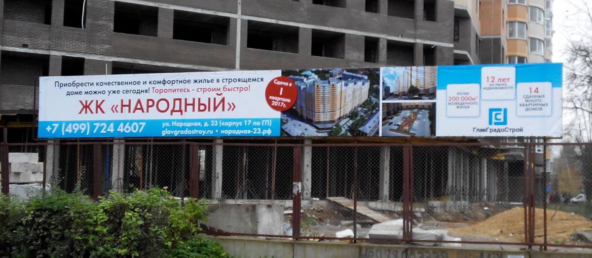 ЖК "НАРОДНЫЙ", ул. Народная, 23 (Главградострой) 2 очередь - БАНКРОТСТВО застройщика