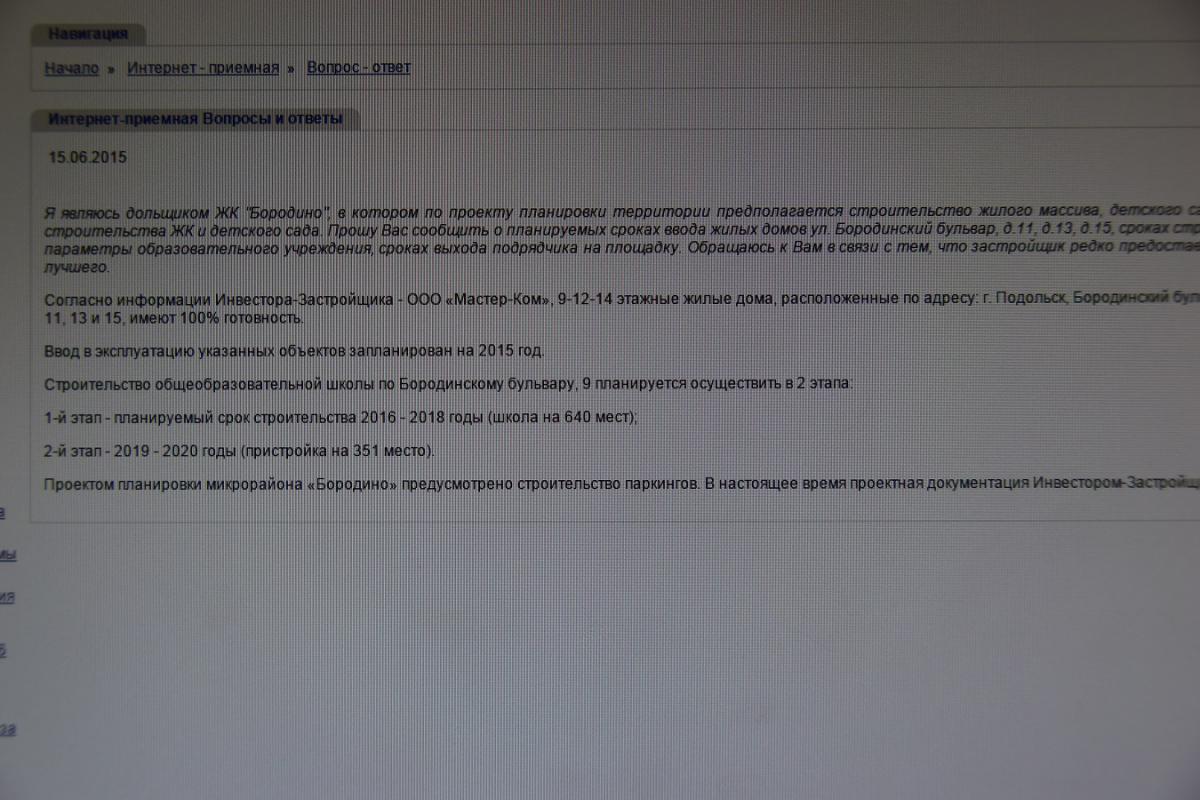 Нашу ветку собственно и инициировал застройщик.Но к большому сожалению дольщиков, представитель застройщика под ником Serg оказался никудышним пиарщиком Мастеркома,не сумел нормально вести с нами диалог, на простые, волнующие всех дольщиков вопросы, о ходе строительства нашего ЖК,нормально не смог отвечать,всё с подвыпертовом, и скатился к банальным оскорблениям пользователей,которые по его мнению задавали неудобные ему, как представителю застройщика вопросы, нарушил тем самым правила нашего замечательного форума,за что собственно и был удалён модератором отсюда. И с тех пор на нашей ветке ЗАСТРОЙЩИК НЕ ПРИСУТСТВУЕТ. Возможно читает.И теперь все вопросы нужно отправлять по почте,на которые кстати застройщик отвечает,и что собственно не противоречит законодательству и пункту в наших ДДу. Застройщик наш действует в рамках ФЗ-214,за два месяца до окончания срока строительства д.2 письменно сообщил о переносе срока сдачи,думаю сделает это и сейчас, пришлёт письма соседям из домов 12 и 17. Т.е. если у нас будут претензии к застройщику по срокам, неустойкам,компенсации, то Велкам в суд, всё в правовом поле.И по поводу нечем похвалиться...Не в коем случае не буду пиарить нашего уважаемого застройщика,только объективности ради...За 3 (ТРИ) года,на 18 ГА.,на нашей заболоченной поляне-пустыре,было построено 6 (ШЕСТЬ) многоквартирных, разной этажности домов,великолепнейший детский сад,достроена и оснащена современным газовым оборудованием мощная котельная,полностью выполнено подключение к электросети городской,и соответственно подключены к городским сетям канализация,водоснабжение и ливнёвка. Для сравнения можно почитать соседние ветки наших городских новостроек.И кстати наш застройщик публикует инфу о ходе стройки у себя на сайте,правда по чему то с фотографиями с нашего форума...