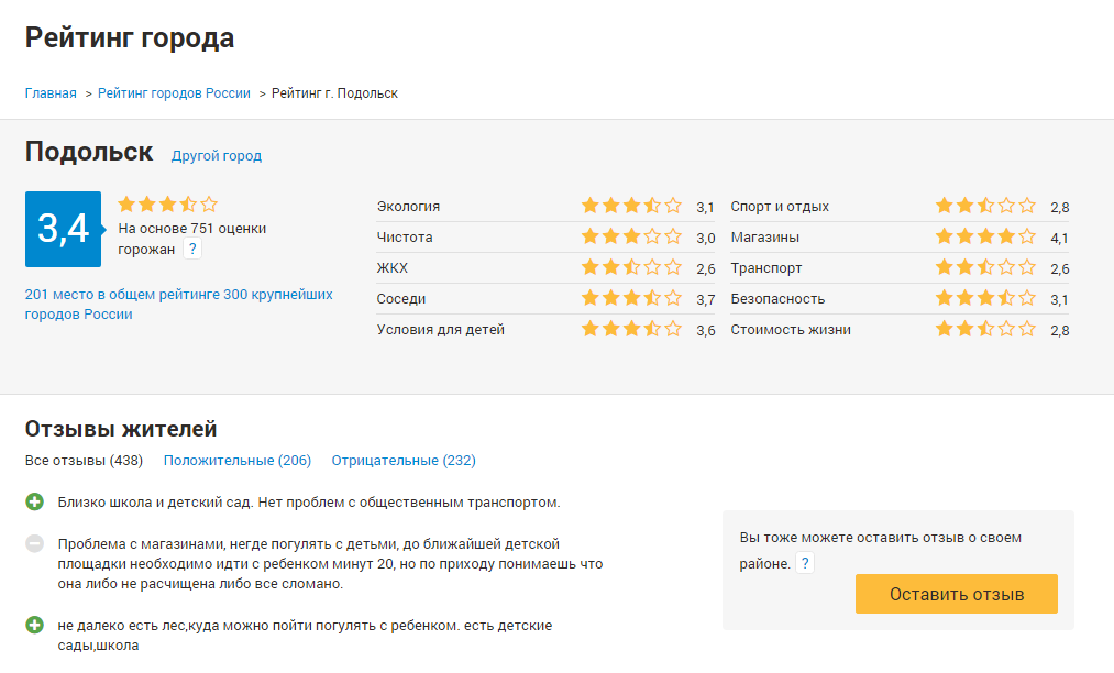 Общая оценка 3,4 на основе 751 оценки горожан