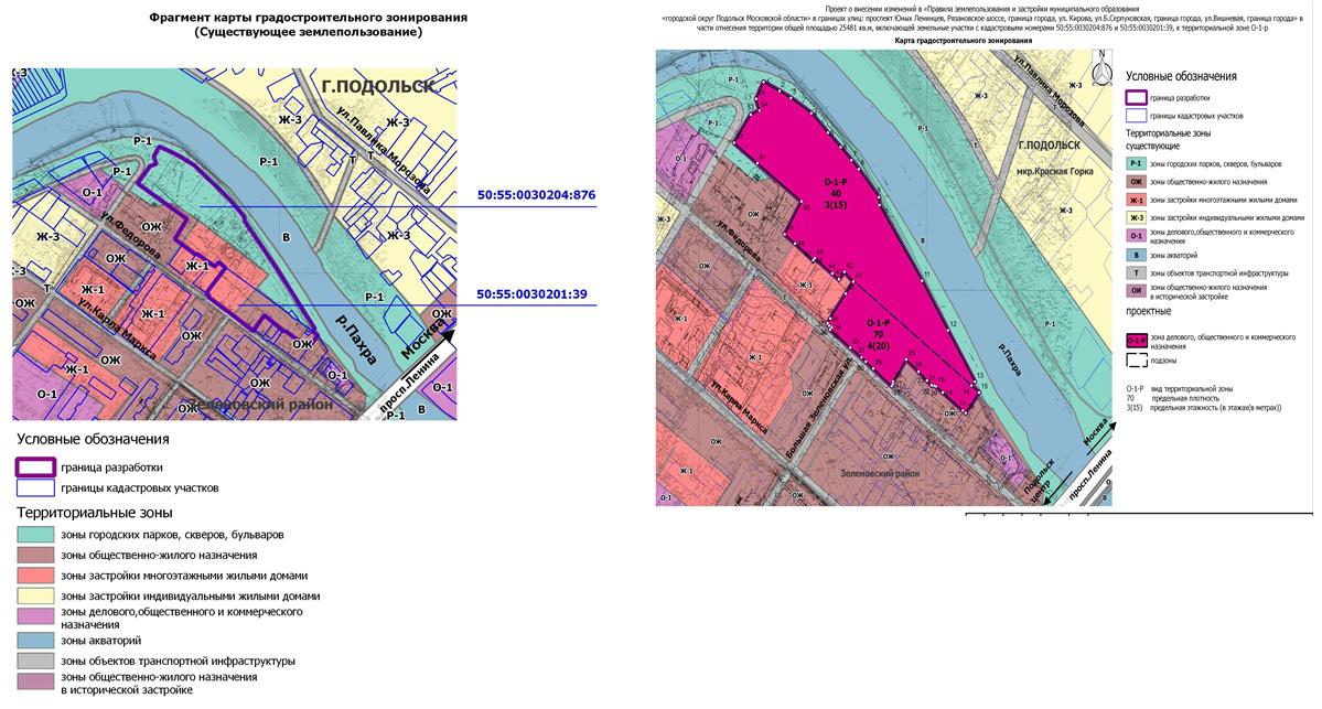 29 августа 2016 года в 17.00 по адресу: Московская область, г. Подольск, ул. Комсомольская, д. 61 (в здании МУП г. Подольска «Подольскгражданпроект»), состоятся публичные слушания по вопросу внесения изменений в «Правила землепользования и застройки муниципального образования «городской округ Подольск Московской области» в границах улиц: проспект Юных Ленинцев, Рязановское шоссе, граница города, ул. Кирова, ул. Б. Серпуховская, граница города, ул. Вишневая, граница города», утвержденные решением Подольского городского Совета депутатов от 16.02.2010 № 48/6, в части отнесения территории общей площадью 25481 кв.м, включающей земельные участки с кадастровыми номерами 50:55:0030204:876 и 50:550030201:39, к территориальной зоне О-1-р.