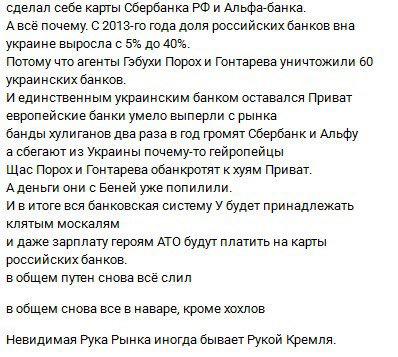 С Приватом должны были сделать второе, а делают первое. Да ещё и вливают туда $5,5 миллиардов государственных денег. Вместе с национализацией это означает, что Приват становится в Украине российским Сбербанком, который не умрёт никогда. Во всяком случае, пока в этом банке будут счета и вклады половины населения страны.