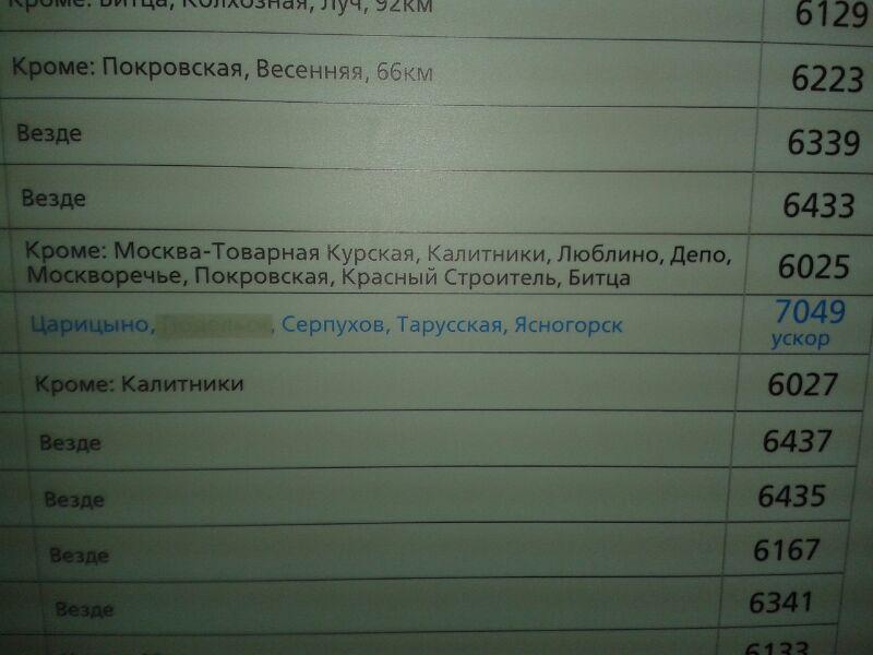 СЕРПУХОВ 08:08 с опозданием на 1 мин 1 ч 13 мин 08:10