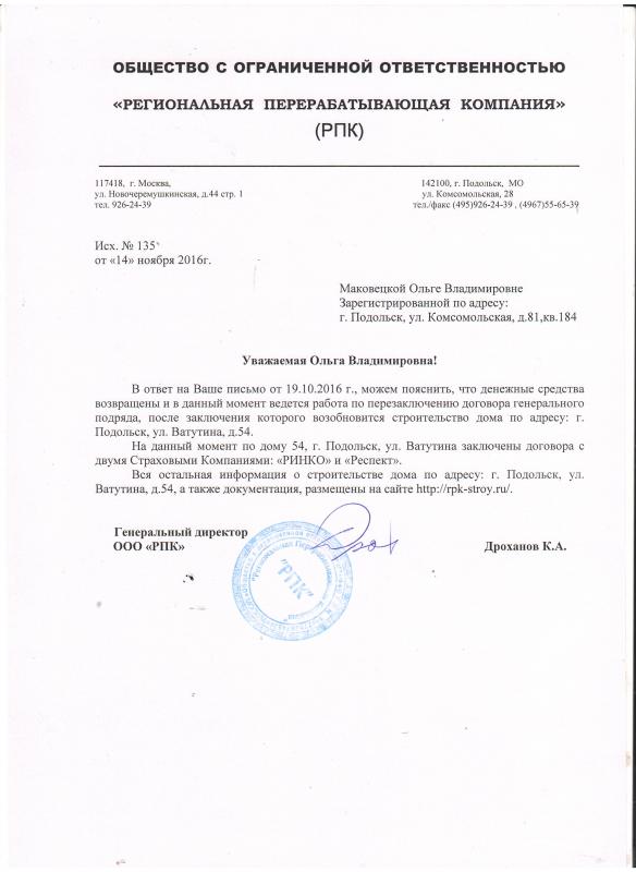 Ответ ООО "РПК" на мое письмо от 19.10.2016 года ( cмотри 7 страницу форума) появился на моей электронной почте 25.11.2016г. в 9:34.