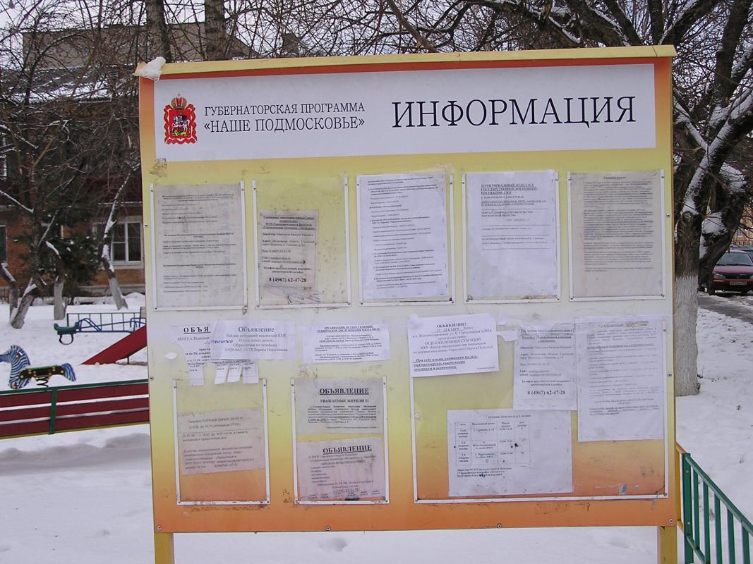 А нужны ли они вообще? Опять чиновники придумали, как на жителях наживаться. Штрафы платить будут из нашего кармана?Мособлдума на заседании в четверг приняла в первом чтении поправки в региональный закон «О благоустройстве», предполагающие привлечение к административной ответственности за отсутствие во дворах информационных стендов.