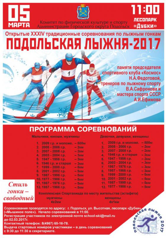 «Подольская лыжня-2017». Открытые XXXIV традиционные соревнования по лыжным гонкам.