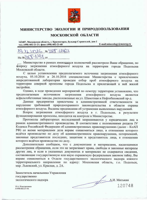 После жалоб в администрацию предприятие должно было приостановить свою работу с 1 декабря по май, но никаких перемен не произошло. Однако, в администрации Подольска считают, что жалобы жителей беспочвенны: им просто показалось.