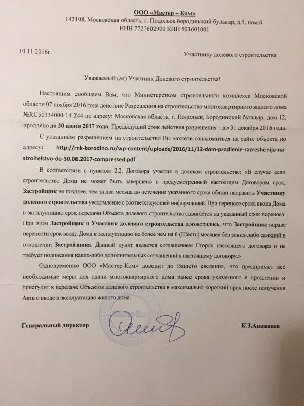 По 12 дому прислали письмо, что срок сдачи 30 июня 2017