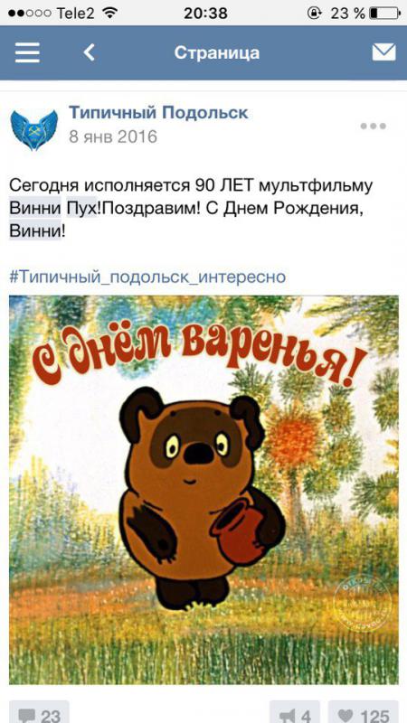 "Меня в "Типичном Подольске" заблокировали за то, что я им указал в их ошибке. Они написали, что мультфильму Винни-Пух исполнилось 90 лет, когда не мультфильму, а самому герою исполнилось 90 лет. Мультфильм же вышел в 1969 году. Вот так ТП превращает людей в ТП."