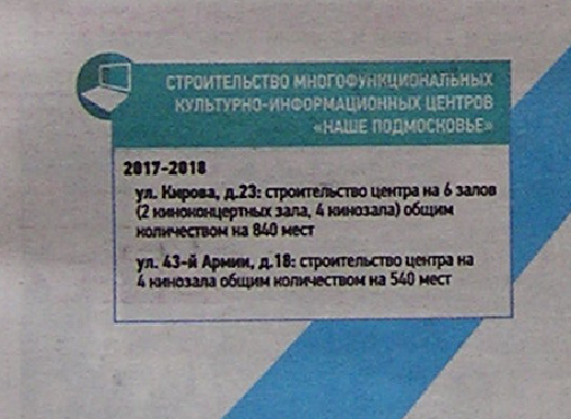 Еврон писал(а):А где в Подольске открыли детский кинотеатр? Не вижу тут освещения по даннному объекту.