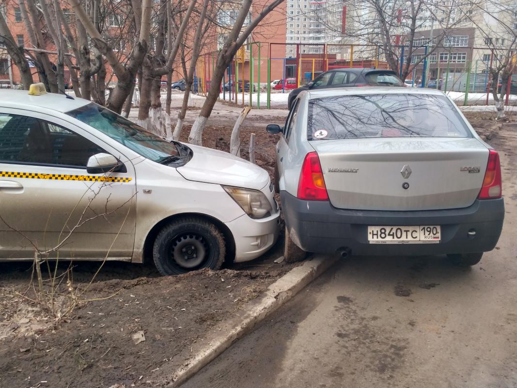 Поясняю. Эта ТП на логане заехала на газон в грязь и старый импотент на такси сделал так же. С утра ТП начала выезжать, забуксовала, упершись в бордюр и ее начало сносить к таксисту. Она видимо прекратила попытки выехать, бросила машину и перекрыла сквозной проезд через двор.