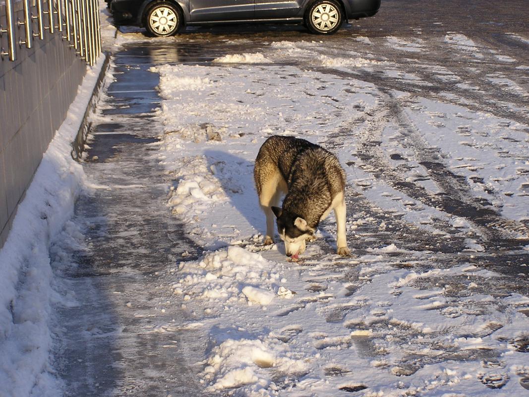 Друг успел притормозить, вышел, проверил собаку. Отвез во дворы и поехал. Пёс побежал за машиной, снова чуть не угодил под колеса.