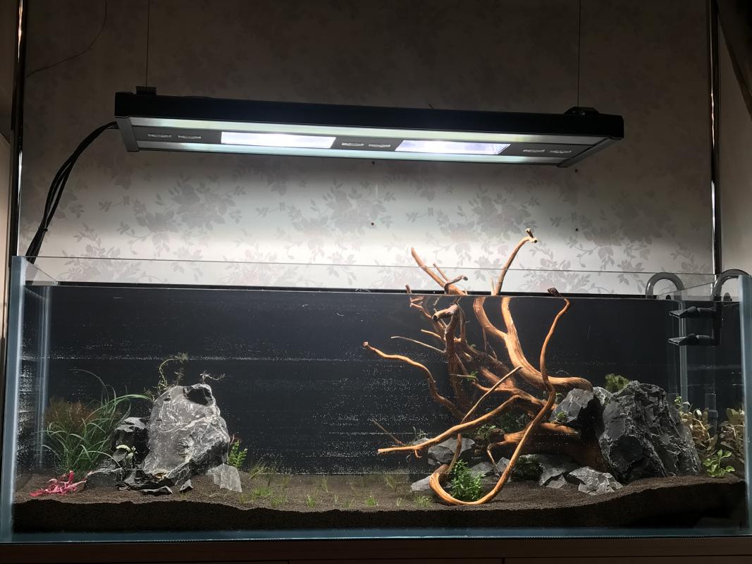 решил просто поделится, сегодня перезапустил аквариум - все отмыл, прикрепил новый фон, поменял грунт. Это мой первый перезапуск.