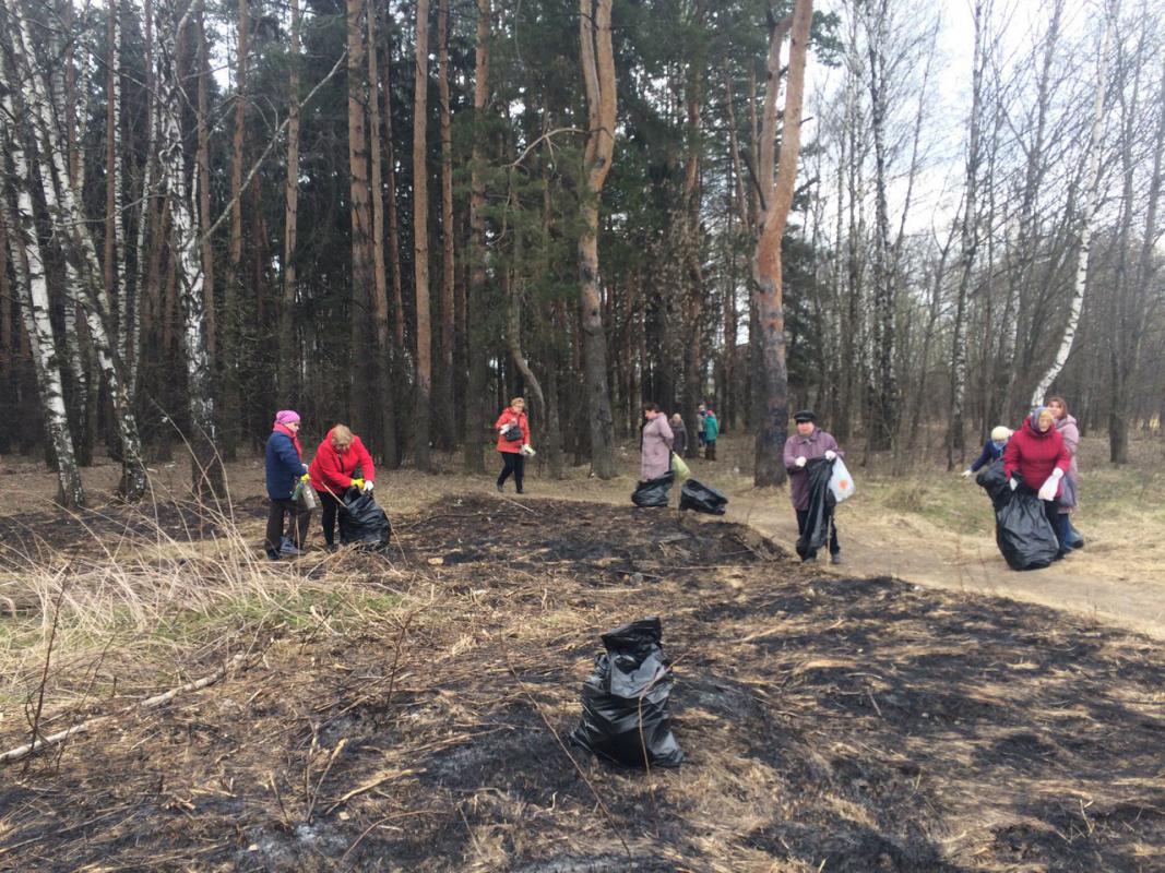 Сегодня бюджетники Климовска убирались на поле и в лесу за "Леруа".