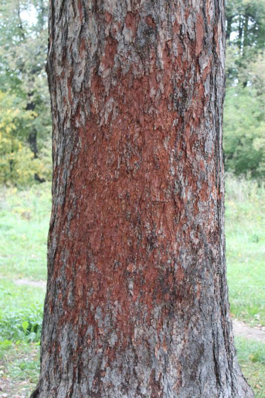 Есть одна двухсотлетняя лиственница (фото внизу), постоянно страдающая от костров, которые под ней периодически разжигают, а также от пытливых метателей ножей, которые превратили ее в мишень. Кора дерева облетает, на стволе видны сильные порезы, из которых слезно сочится смола.
