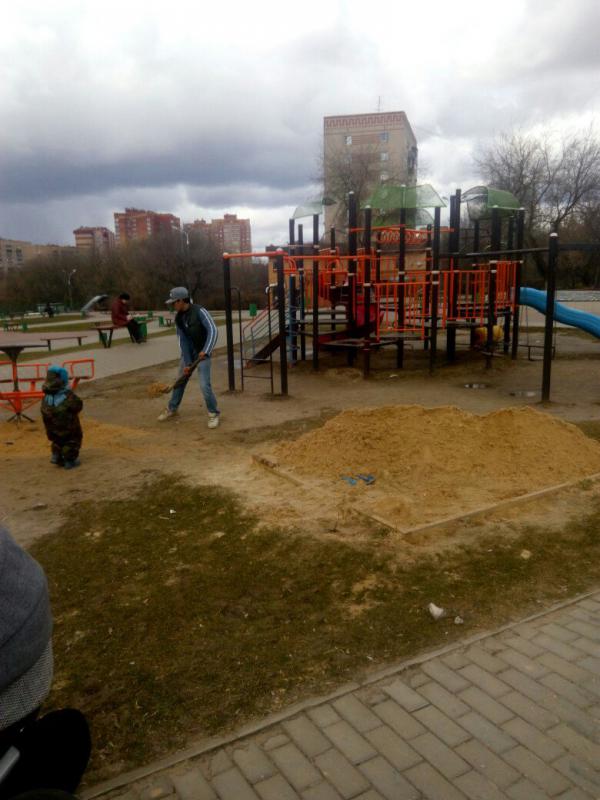 Жители пожаловались на портал «Добродел». Новый песок должны были привезти 14 апреля, но благоустраивать площадку местные власти не собирались. Заместитель главы администрации городского округа Подольск Сергей Иванов заверил, что работы выполнены, так как ему прислали подтверждающие это фотографии.