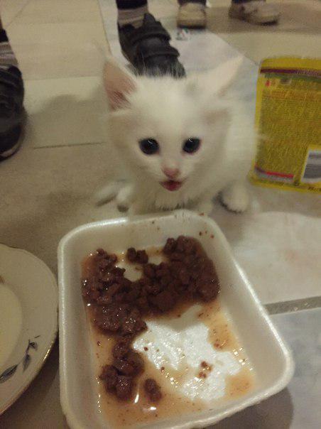 Найден упитанный белый кот с разноцветными глазами в районе ул.Веллинга г.Подольск