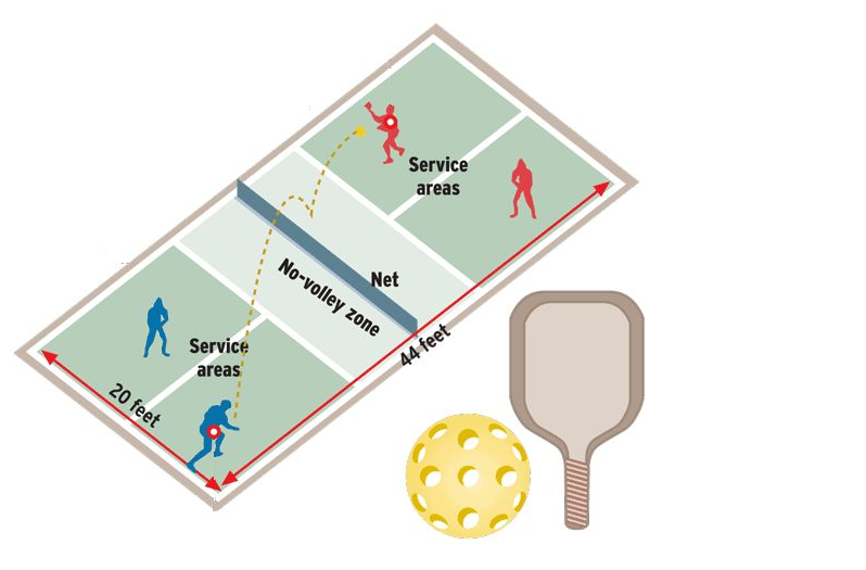 По своим размерам корт для пиклбола не отличается от корта для игры в парный бадминтон. Воспользуйтесь разметкой для игры в парный бадминтон, которую можно найти в любом спортзале.