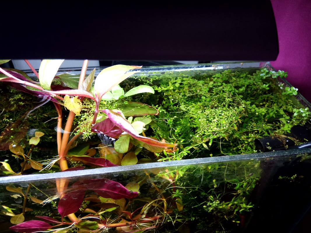 Из растений - куба, хеммиантус микрантемоидес, коричневая людвигия, альтернатера и 5 видов мхов (один вроде яванский, 2 брал у дяди Жени (названия не знаю), пламя практически погиб) и какой то папоротник.