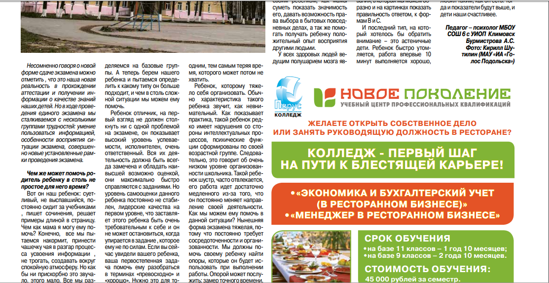 Статья учителя в газете "Местные вести" сегодня. Совершенно без правки.