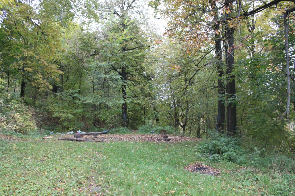 А есть на самом берегу, там, где ранее был каменный грот, запечатленный на картине художником В.Э.Борисовым-Мусатовым, небольшая поляна. В центре живописно красуются очаг, пластиковые сосуды, а окружают заботливо поляну все те же вековые липы, искусно расписанные синей краской из балончика - росписи суть знаки, иероглифы людей из параллельных адовых миров...