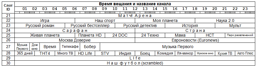 Актуальное расписание вещания спутниковых каналов по ТВК34 Москва, Останкино - в рамках коммерческого мультиплекса