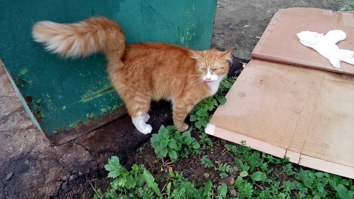 Во дворе дома 43 по ул Парковая второй день находится явно домашний большой рыжий кот, трется об ноги, просится. может заблудился.