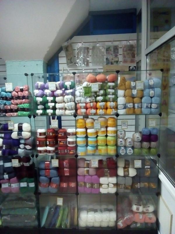 Вот несколько фото магазина: Большой выбор пряжи, ткани, фурнитура для бижутерии.