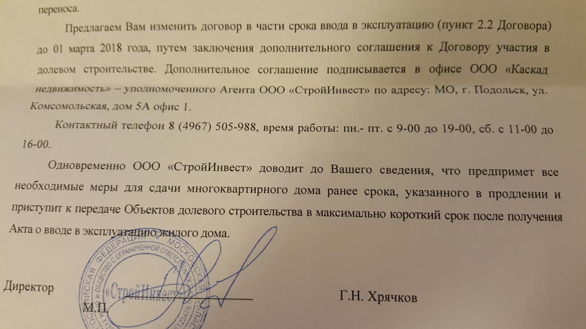Сегодня с почты забрал письмо о переносе сроков сдачи на 1 марта 2018 года. Предлагаю прийти заключить допник. Вот думаю.... :lol: :lol: :lol: