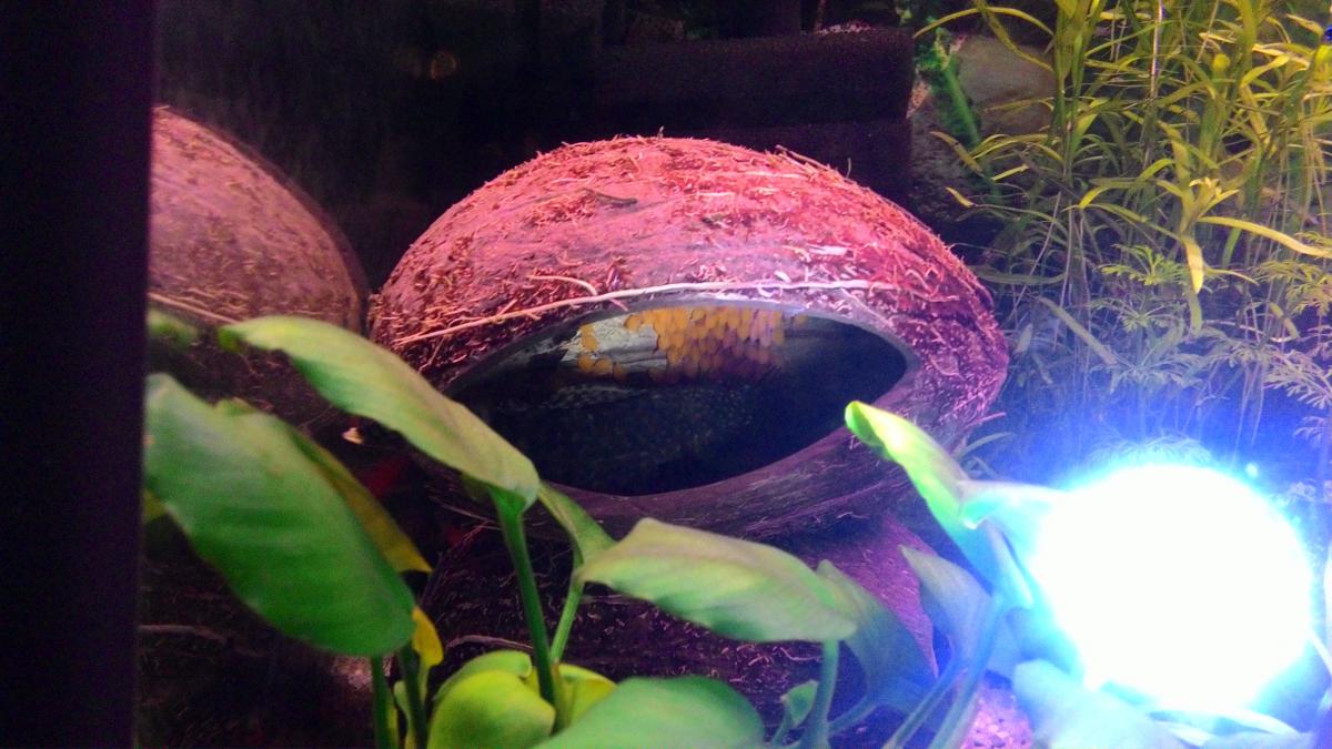 Живут в отдельном нерестовике. Кормятся мороженным животным кормом, чипсами, таблетками, овощами.