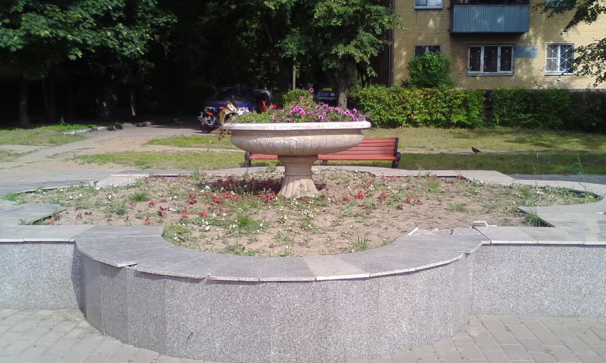 Цветники МУП "Подольский комбинат благоустройства" в бывших фонтанах: