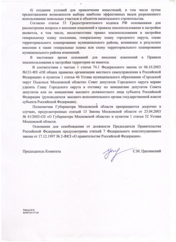 Ответ председателя стройкомитета по быковским домам ПДСК от 2 августа 2017 г.