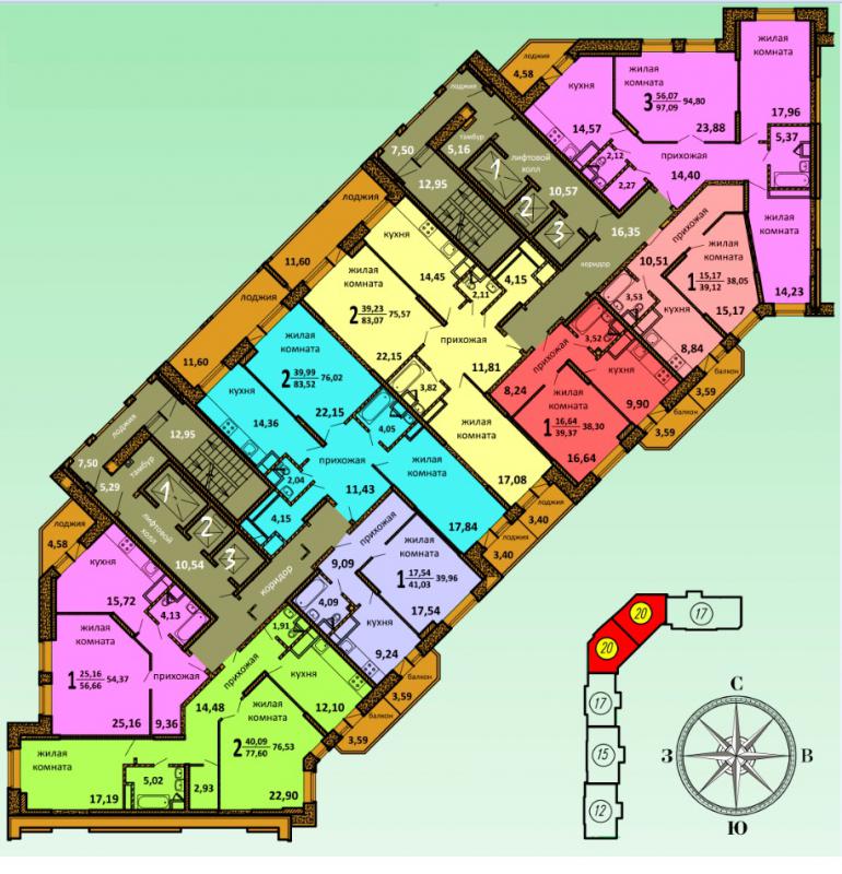Лифты устанавливают в соответствии с количеством этажей. На 20 этажей положено 3 лифта, на 17 этажей - 2 лифта