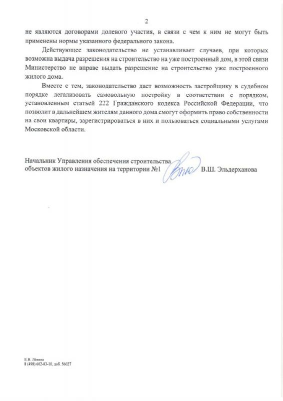 Письмо скорей не липовое, потому что я на свой запрос в министерство получила аналогичный ответ. Знакомая из стройнадзора сказала, что это обычная практика, все в 99% случаев решается через суд, вопрос времени и готовности к этому суду ГГС. Сотрудница ГГС тоже говорила, что если не получится оформить разрешение (а видимо уже и не получится), то будет суд, самый оптимистичный прогноз - 3 месяца... А по стройке: пропала каска, которая висела на въезде в паркинг месяца 2) вот и все изменения...((