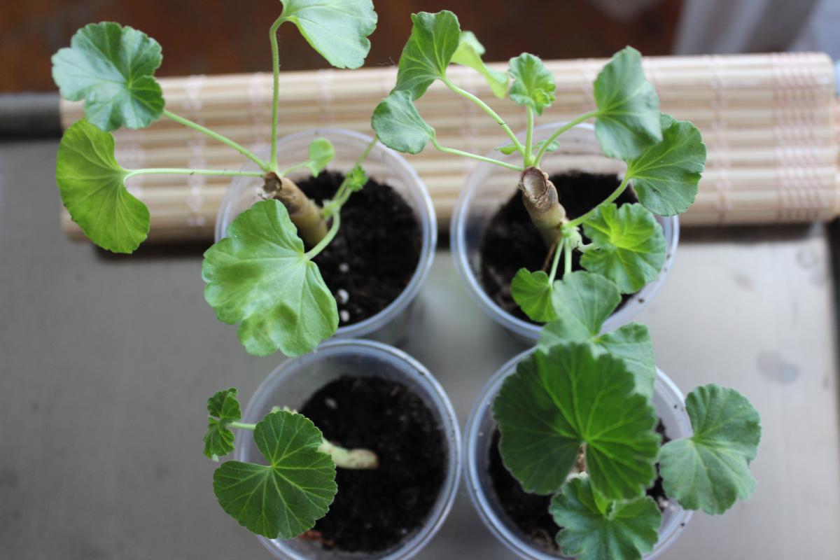 От герани (или пеларгонии? я, к сожалению, не разбираюсь особенно) укоренилось много черенков.
