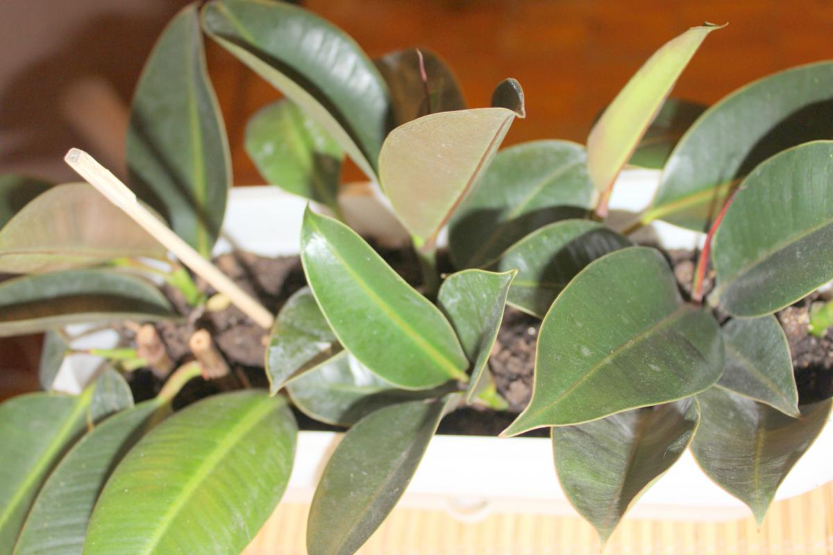 Малыши - фикусы были рассажены отдельно. Фотоаппарат дают некую "серость", но пыли на листиках нет, вполне себе обычные фикусы по цвету.