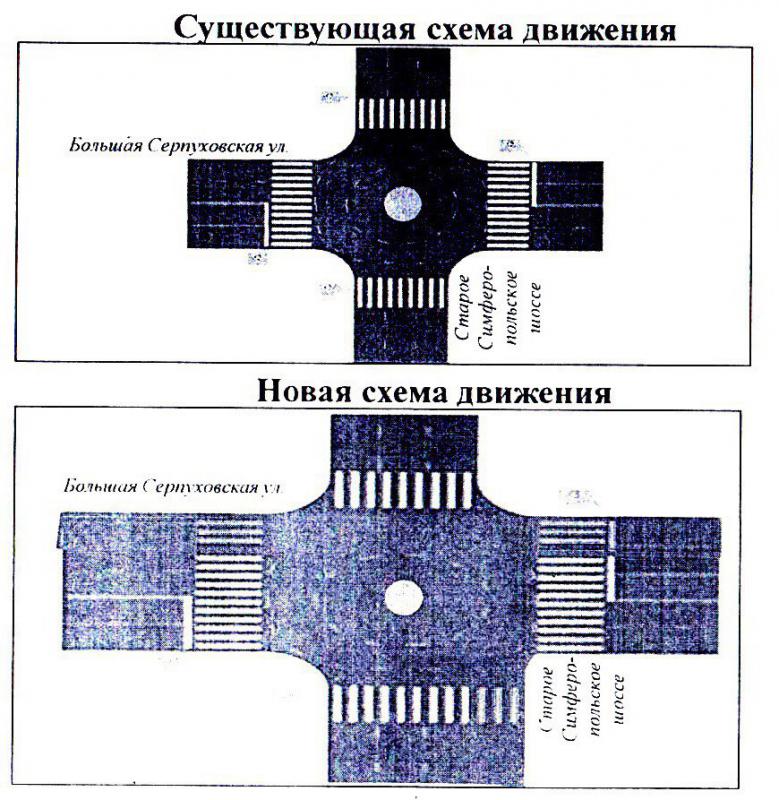 1. Устройство дополнительных полос на Старосимферопольском шоссе при подходе к круговой развязке у ГМ «Глобус», и на ул. Б. Серпуховской на съезде с круговой развязки;