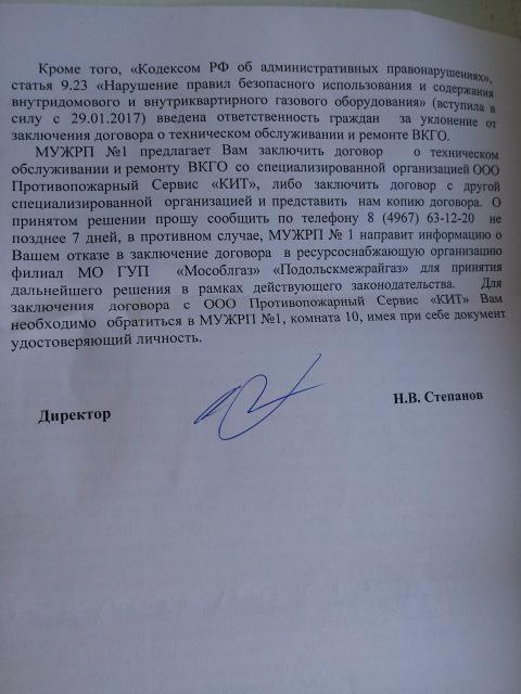 Сегодня получила письмо из МУЖРП-1:traviata писал(а):Сегодня сходила в МУЖРП-1 и написала отказ от ТО газового оборудования. Так меня уж стращали-стращали,что через месяц ко мне придут и отключат газ:поставят заглушки на трубу в моей квартире,а еще и весь подъезд из-за меня отключат от газа.Стыдили,что закон надо исполнять,а я типа безответственная и т.п. и т.д. А я послушала-послушала,да и подписала отказ от ТО,сказав,что если отключат газ-буду в микроволновке еду готовить