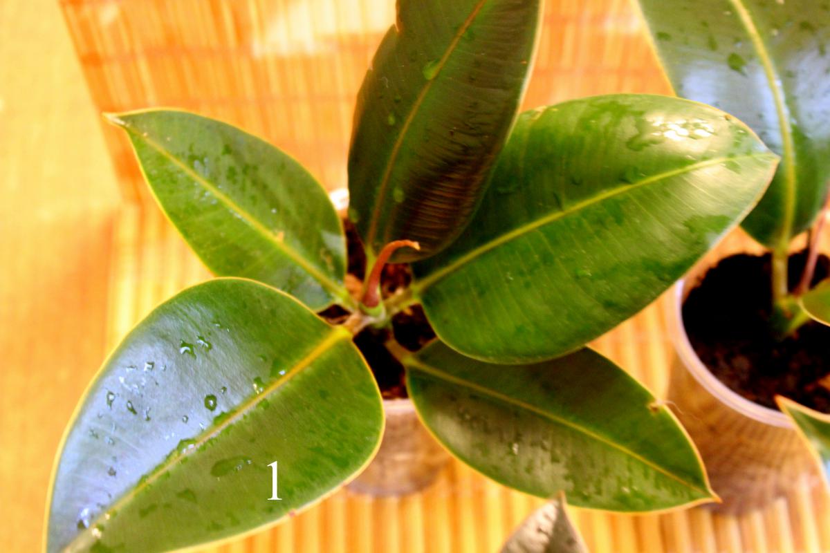 Малыши - фикусы были рассажены отдельно. Фотоаппарат дают некую "серость", но пыли на листиках нет, вполне себе обычные фикусы по цвету.